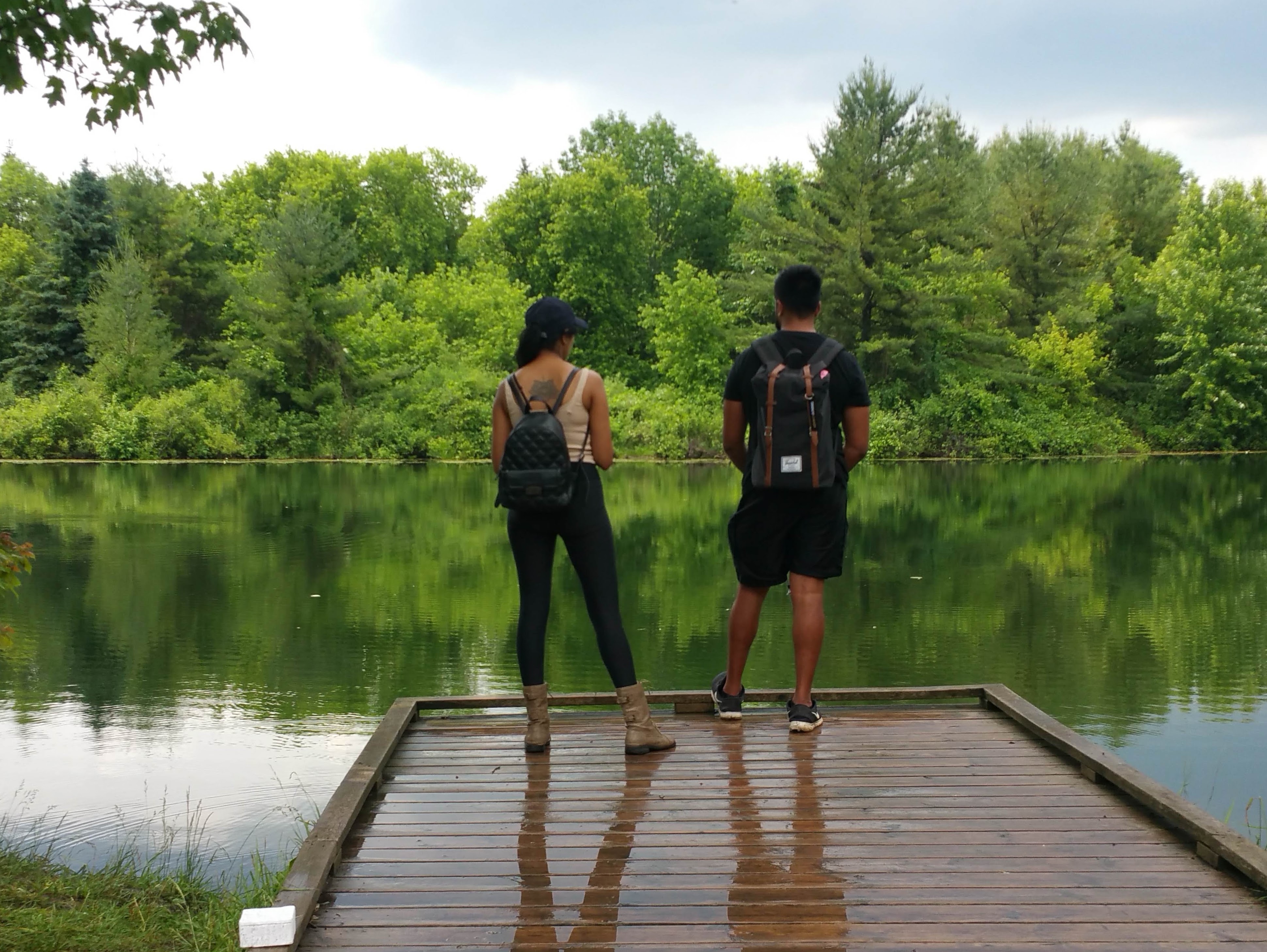 They stepped to the edge of the dock and jumped.